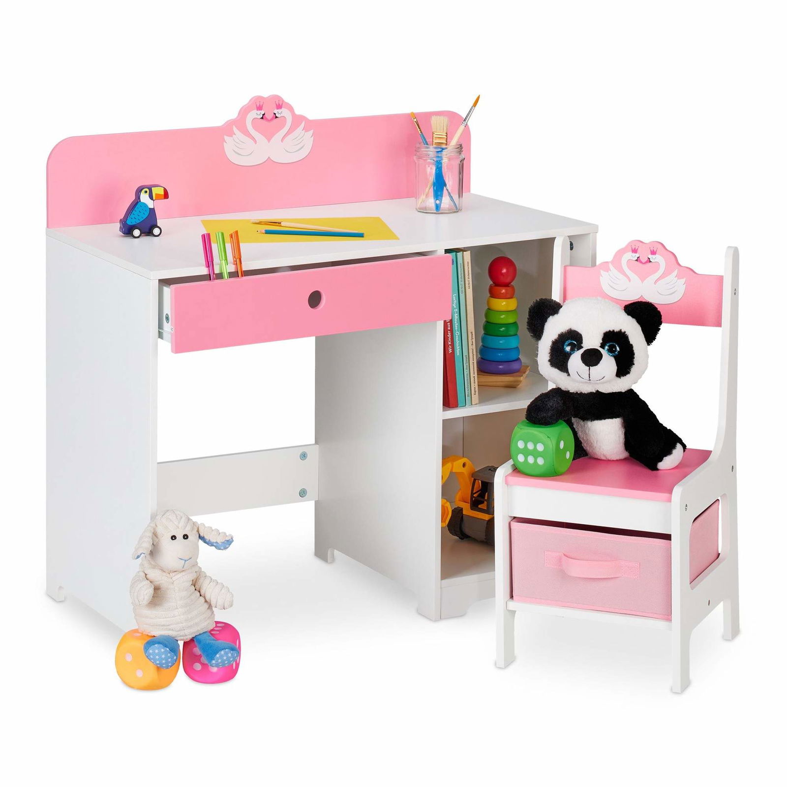 SoBuy Skrivbord för barn med stol Skrivbord med förvaringsskåp KMB113-W