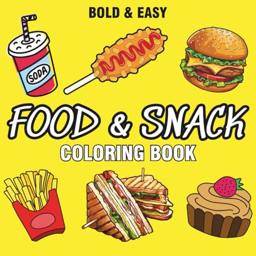 Food & Snack: Coloring Book For Adults & Kids, Simple and Big Designs Featuring Cute Food, Pizza, Sushi, Ice Cream, Fruits, Cakes, Dessert, Cupcake, Donut and More (Bold & Easy Coloring)