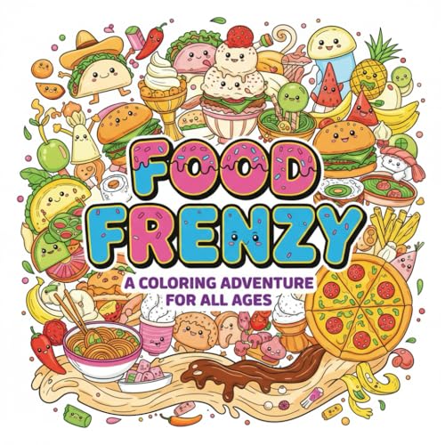 Kawaii Food Frenzy Coloring Book: An Adorable Coloring Adventure for Kids, Teens, and Adults Featuring Cute Burgers, Pizza, Sushi, Ramen, Desserts, and More for Fun and Relaxation.
