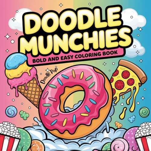 Doodle Munchies Coloring Book for Kids & Adults: Bold & Easy Cute Food Illustrations of Burgers, Sushi, Pizza, and Sweet Treats