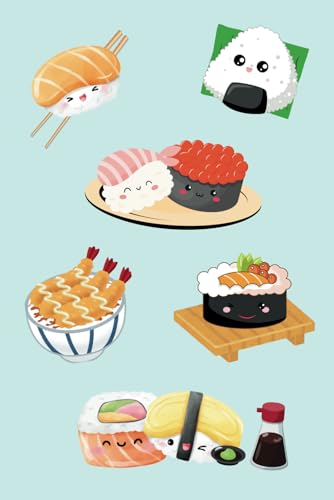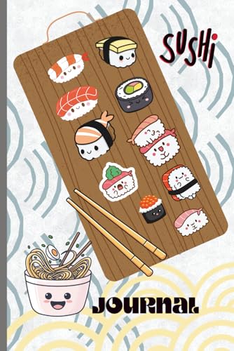 Journal: Cute SUSHI theme lined 6" x 9" 150 page book for daily writing, log keeping, lists, assignments, diary for kids or adults, gift for birthday, holiday or back to school