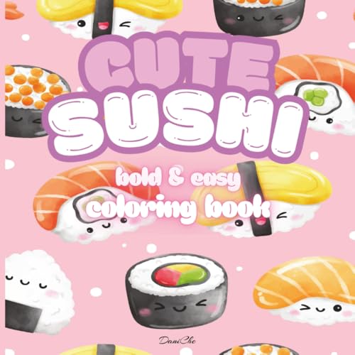 Cute Sushi: A Bold & Easy Coloring Book Perfect for Adults and Kids of All Ages Featuring Big & Simple Designs for Relaxation