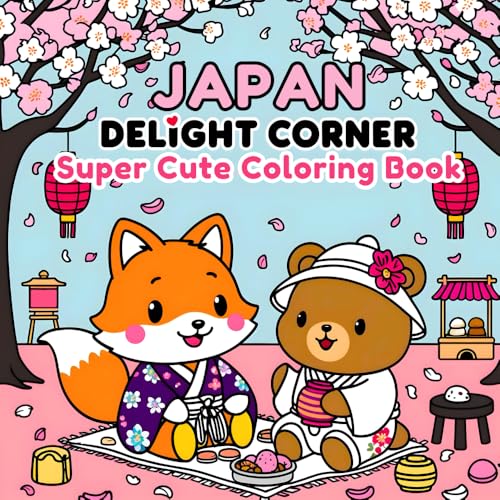 Japan Delight Corner: Super Cute Kawaii Coloring Book for Kids, Teens & Adults | Adorable Sushi, Cherry Blossoms & Tokyo Street Scenes: A Fun and ... Coloring Book for Stress Relief & Creativity