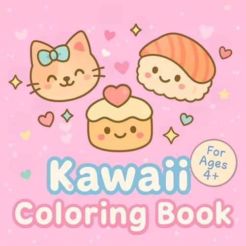 Kawaii Coloring Book for Ages 4+: 50 Adorable Pages of Sushi, Cats, Cupcakes & More – Perfect for Girls, Boys, and Creative Kids