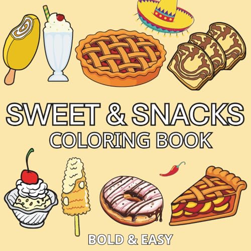 Sweet & Snacks: Coloring Book For Adults & Kids, Simple and Big Designs Featuring Cute Food, Pizza, Sushi, Ice Cream, Fruits, Cakes, Dessert, Cupcake, Donut and More (Bold & Easy Coloring)