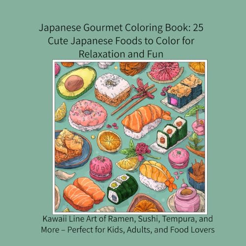 Japanese Gourmet Coloring Book: 25 Cute Japanese Foods to Color for Relaxation and Fun: Kawaii Line Art of Ramen, Sushi, Tempura, and More – Perfect for Kids, Adults, and Food Lovers