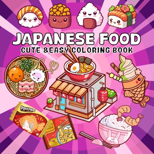 JAPANESE FOOD CUTE & EASY COLORING BOOK: Enjoy Hours Of Fun And Relaxation With 40 Cute and Easy Illustrations Featuring Sushi, Miso Soup, Ramen, And ... Kids, Teens, Adults, and Japanese Food Lover