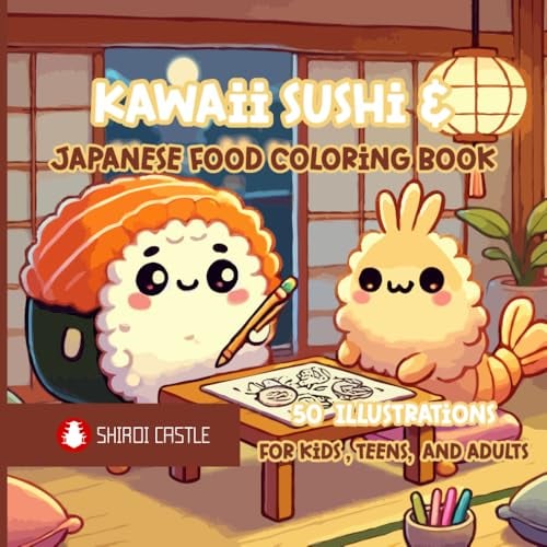 Sushi Kawaii Coloring Book for Adults and Kids: 50 Cute Sushi Coloring Pages for Relaxation and Stress Relief | Japanese Kawaii Coloring Book for Cute Lovers