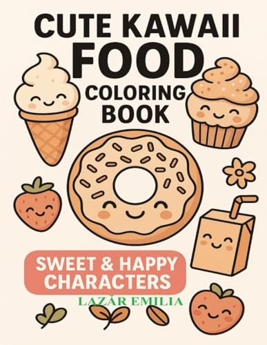 The Ultimate Kawaii Food Coloring Book for Kids & Adults: 45 Cute and Easy Coloring Pages Featuring Desserts, Sushi, Snacks, Drinks, and Sweet Treats: The Perfect Relaxation and Fun Activity Gift!