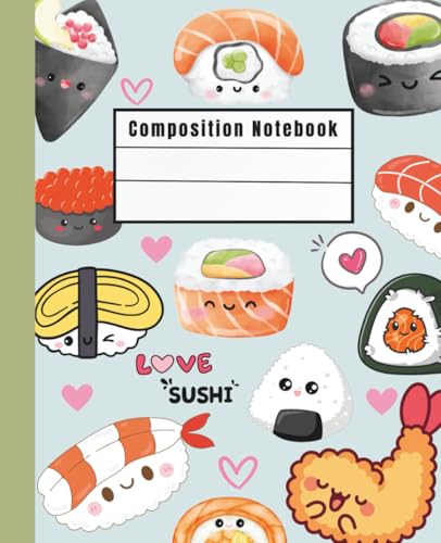 Composition Notebook Wide Ruled: Cute Kawaii Sushi | 7.5 x 9.25 inches | 110 Pages | For Kids Girls and Teens