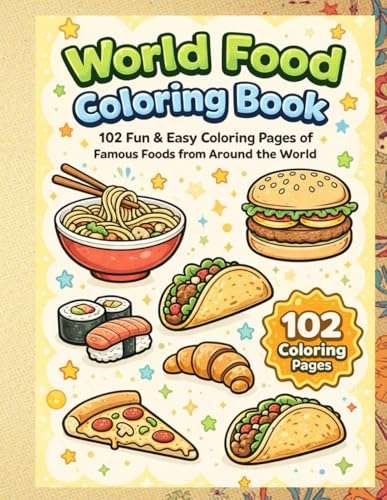 Famous Foods from Around the World for Kids: Fun & Easy Coloring Pages Featuring Pizza, Burger, Sushi, Noodles, Tacos, and More