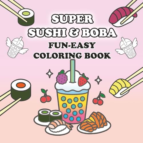 Super Sushi & Boba: Coloring Book for Adults and Kids, Fun and Easy, Big and Tasty Designs for Relaxation Featuring an Array of Sushi and Seasonal Boba