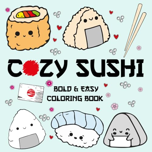 Cozy Sushi Coloring Book Bold & Easy: Enjoy A Delightfull Moments Of Kawaii Japanesse Food Coloring Pages For Relaxation & Stress Relief For Both Adults & Teens & Kids ( Bold And Easy )