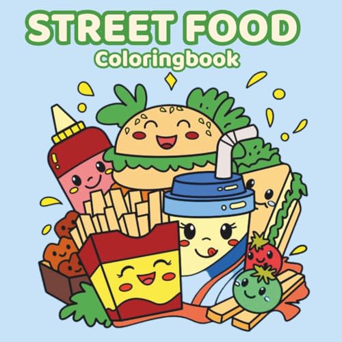 Street Food Coloring Book for Kids: 50 Yummy and Cute Illustrations of Tacos, Burgers, Sushi, Pizza, and Food Trucks - A Deliciously Fun Activity Gift for Foodies