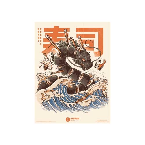 Pyramid internationell Ilustrata-duk (Sushi Dragon Design) stor duk 30 cm x 40 cm, väggdekoration väggbilder för män, kvinnor och barn – officiella varor