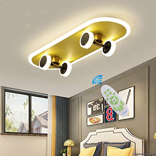 Taklampa guld, barnrum, skateboard lampa, LED dimbar, sovrum, dekoration, taklampa pojkar, barn, ungdomsrum, taklampa, modern design för badrum, vardagsrum, vägg, fjärrkontroll, pendellampa (A)