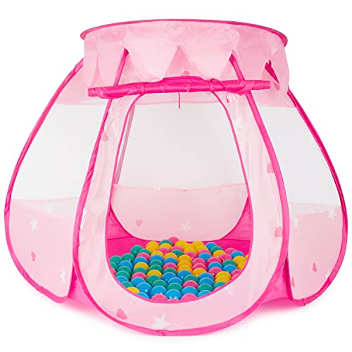 Bieco Prinsessor barntält för inomhus | inklusive 100 bollar | Prinsessa | tält barn | lektält flickor | Princess Tent | bollbad | barntält flickor | lektält barnrum