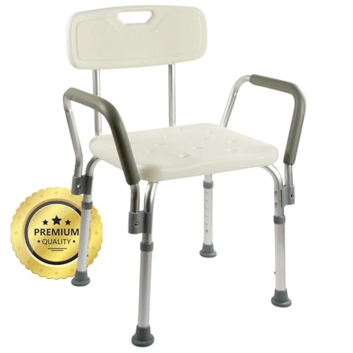 OrtoPrime Duschstol med avtagbart ryggstöd - Ortopedisk badstol Vuxna och barn - Vadderade armstöd - Dimbar 6 höjder - Bekväm och säker toalettsits