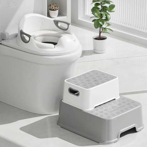 NCKIHRKK Toalettsits med trappa, toalettfäste barn, justerbar höjd, toaletter för 1–7 år, grå
