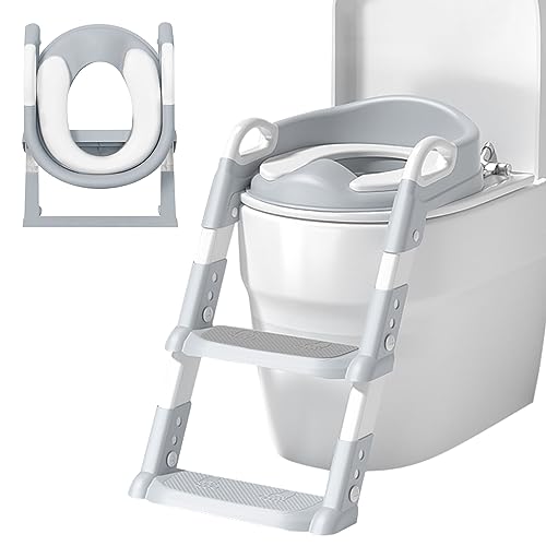 FANWINKJ Toalettsits barn med trappa, toalettsits barn, potta toaletttränare med trappa för pojkar och flickor, baby (grå)