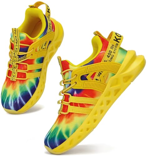 Kricely pojkar barn träningsskor pojkar tennisskor flickor löpning promenadskor skola gym sport träningsskor andningsbara lätta sneakers, Regnbåge, 35 EU