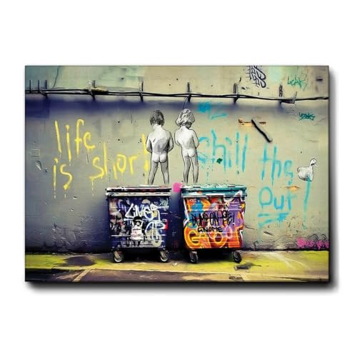 Giallobus - Målning - Banksy - Barn kissar - Hög tjocklek Premium Vävstol Canvas - 100x70 - Redo att hänga - Moderna målningar för hemmet