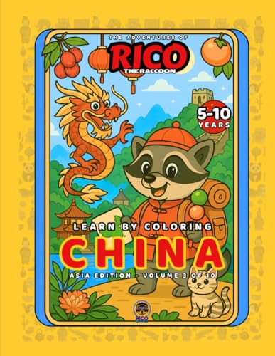 Rico the Raccoon Explores China – Kids’ Coloring Book: Great Wall, Pandas & Festivals | Educational Activity for Ages 4-8