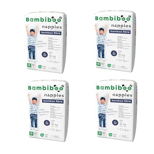 Bambiboo Set 4 x 15 Bambiboo Engångsblöjor med bambufiber - Hudvänliga barnblöjor - Hudskydd - Hög absorptionsförmåga - Storlek 6 (XXL), 60 delar