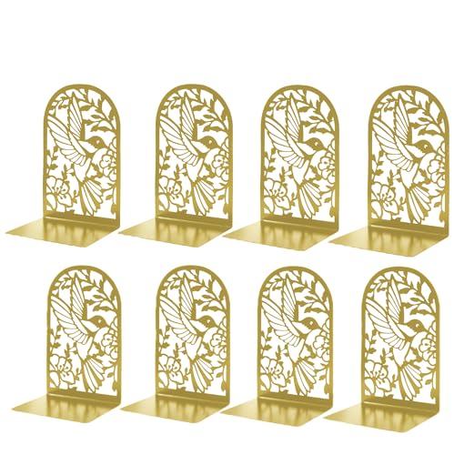 Deefongo Bokstöd 8 stycken, bokstöd metall guld, bokstöd bokhållare för hylla, gyllene bokstöd för barnböcker, kontor, skola och bibliotek