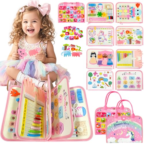 Busy Board, leksaker för barn 2 år, Montessori barnböcker 2, sensorisk bok barn 1 år, present till flicka 2 år, pedagogiska spel för barn, aktivitetsbräda, present till 2