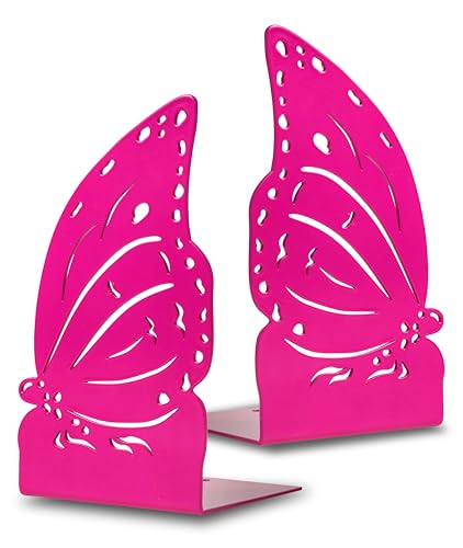 IPEA Bokstöd för barnböcker - Tillverkad i Italien - fjärilsdesign - 2 stycken - dekorativa metallbokhållare för barnrum, hem, skola, skrivbord, hyllor - bokhållare för barn