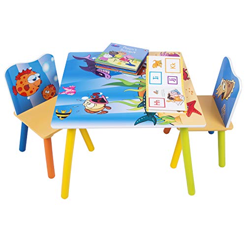 WOLTU Barnbord med 2 stolar, bord och stolar, set för barn, rundade hörn, säker, barnstolsgrupp med havsmotiv för förskoleelever, barnrum, dagis