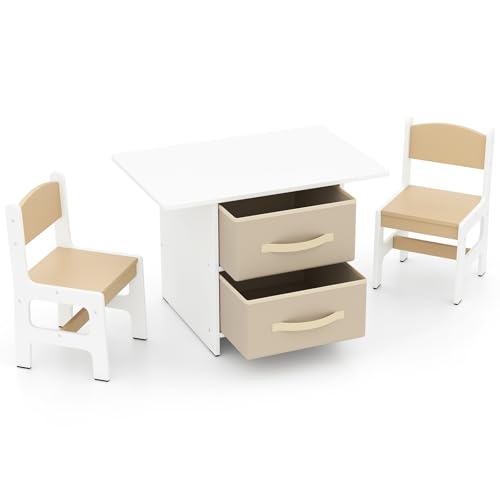LIFEZEAL Barnbord med 2 stolar, barnbordsgrupp, trä med förvaringsutrymme, multifunktionellt aktivitetsbord, barnstolsgrupp för barn från 4 år (beige)