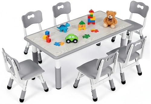 MAMIZO Barnbord, förpackning med 6 stolar, barnbordsgrupp, justerbar höjd, barnbord, stolset för dagis och barnrum, plast, barnmöbler, sittgrupp, pojkar, flickor från 2 år, grå