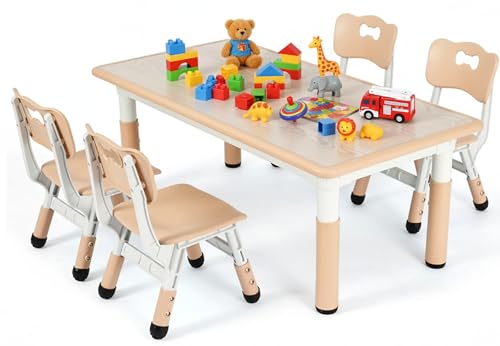 LZQ Barnbord med 4 stolar, barnstol justerbar höjd, barnbordsgrupp, bordsstolset för dagis och barnrum, plastbarnmöbler, sittgrupp för pojkar, flickor från 2 år