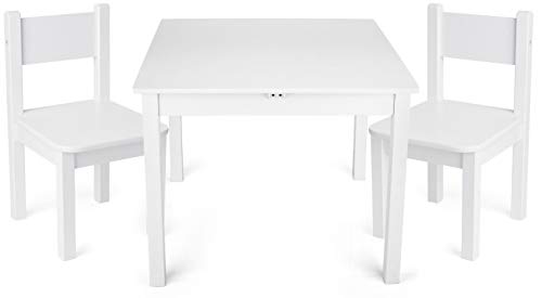 B. spaces barnbord med 2 stolar – barnstolsgrupp – 1 bord och 2 barnstolar med träben för barn från 3 år (3 delar) barnmöbler, krämvitt