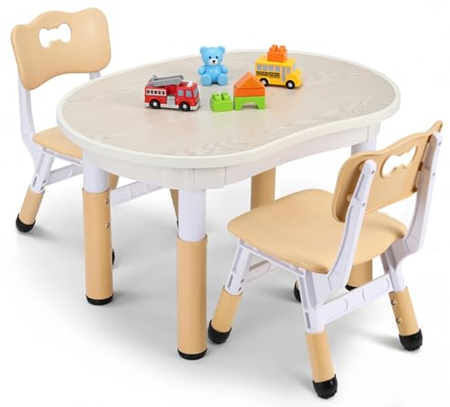 Funlio Barnbord med 2 stolar, barnstol grupp, justerbar höjd för barn i åldern 3–8 år, lätt att torka av målbord för klassrum/förskolor, CPC-godkänd (3 delar)