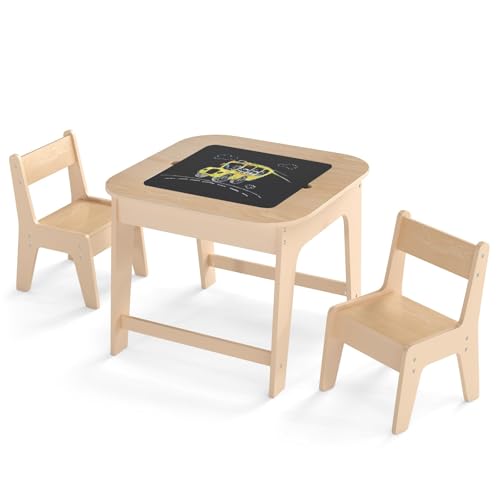 COSTWAY 3 delar. Barnstolsgrupp, barnbord med 2 stolar av trä, 3-i-1 målbord och aktivitetsbord & bordsbord, barnmöbler, barnstolsset för småbarn från 3–7 år (natur)