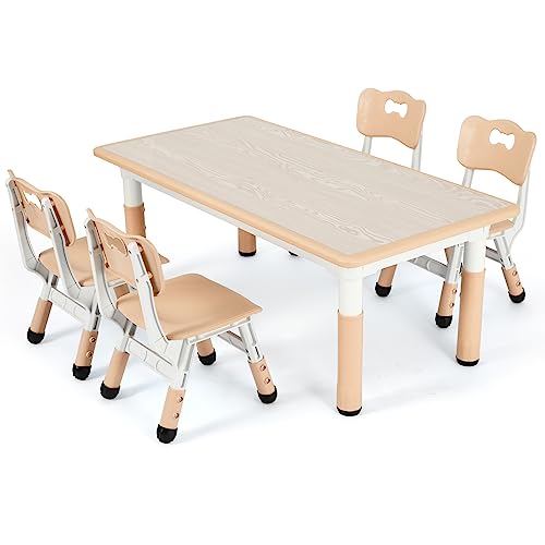 MAMIZO Barnbord med 4 stolar, barnstol justerbar höjd, bordsstolset för dagis och barnrum, plastbarnmöbler, sittgrupp för pojkar, flickor från 2 år, gul