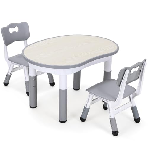 Funlio Barnbord med 2 stolar, barnstol grupp, justerbar höjd för barn i åldern 3–8 år, lätt att torka av målbord för klassrum/förskolor, CPC-godkänd (3 delar)