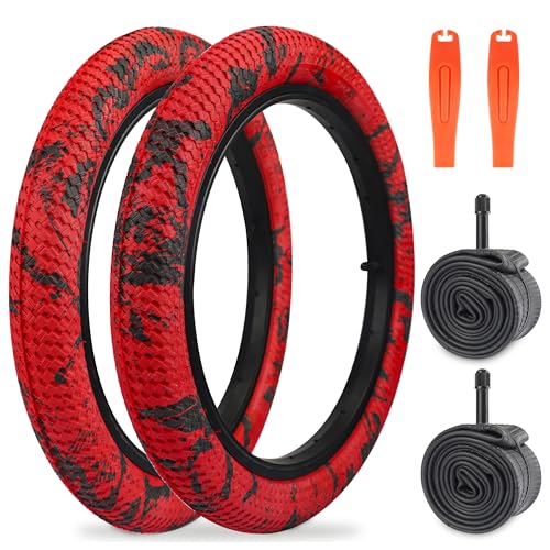 ZUKKA 2-pack 30TPI cykeldäck 16 tums däck 16 x 2,10 kappa 56–305 Plus 2-pack 16 tums slang 16 x 1,75/2.125 AV35 mm för barncykel, MTB, mountainbike, BMX, röd svart