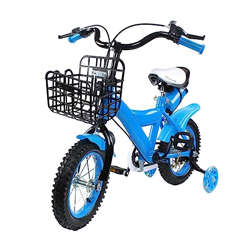 WSIKGHU 12 tums barncykel, pojkar, flickor, cykel, nybörjarcykel, barncykel med stödhjul och korg, lämplig för barn i åldern 2–5 år (blå)