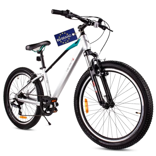 Verdant Bike Barncykel för pojkar 24 tum att välja mellan 7 växlad Shimano-cykel för barn 8 till 12 år med stötdämpare, V-broms (Silver)