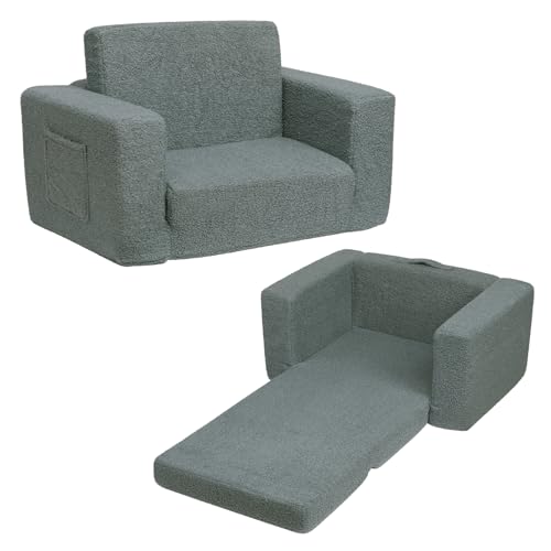 BanaSuper Utfällbar barnsoffa, 2-i-1-barnsoffa med sovfunktion, leksoffa för barnrum och resor, EN71-testad barnfåtölj, gåva till pojkar, flickor (grå)