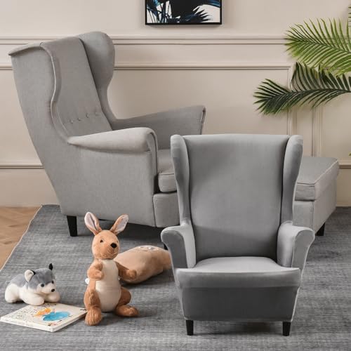 Fåtöljöverdrag för barnfåtölj med öron stretch Stradmon fåtöljöverdrag för barn, grå