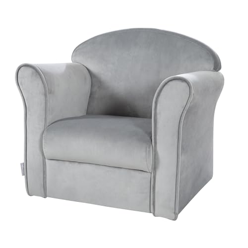 roba Barnfåtölj Lil Sofa - Bekväm fåtölj för flickor & pojkar - Stabila träben - för baby- & barnrum - Sammetstyg - Grå