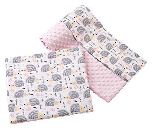 Babyfilt krypfilt med kudde 100% bomull minky barnfilt stor dubbelsidig 75 x 100 + 35 x 30 cm multifunktionell för säng barnvagn medi partners (grå igelkott med ljusrosa minky)