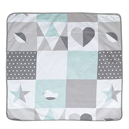 roba Babyfilt Happy Patch - 80 x 80 cm - Mysfilt för att sova, krypa & leka - Barnfilt 2-sidig för spädbarn av mjuk bomull/plysch - Mint/Grå