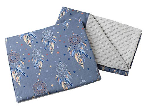 Babyfilt krypfilt med kudde 100% bomull minky barnfilt stor dubbelsidig 75 x 100 + 35 x 30 cm multifunktionell för säng barnvagn medi partners (drömfångare med grå minky)