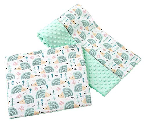 Medi Partners Babyfilt krypfilt med kudde 100% bomull minky barnfilt stor dubbelsidig 75 x 100 + 35 x 30 cm multifunktionell för säng barnvagn (mynta igelkott med minzer minky)